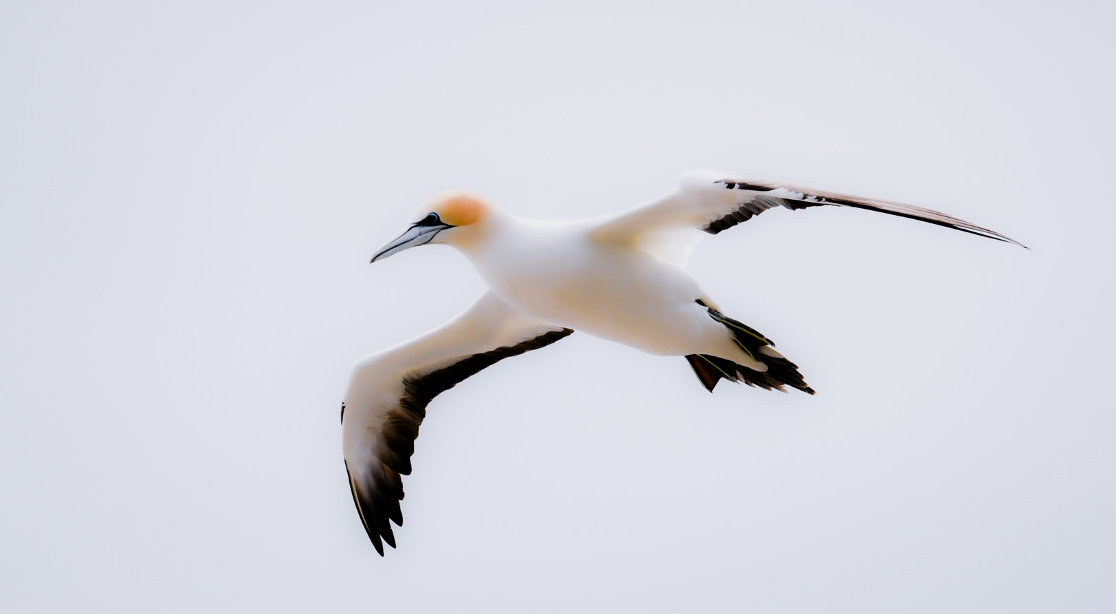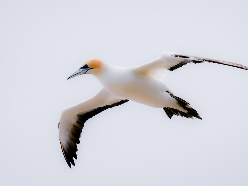 Cruising Gannet. This image is nicely captured of the of the gannet in flight. So, well done for that, you've gone out and you've made a good image. I don't know what you've done post processing to it, though, but it's very soft in the whites. There is no detail in the whites at all, and all around the edges it seems to be bleeding off. It's almost like you used de haze in the opposite direction and increased the haze in the image. Or something of that sort. I don't know exactly what's happened here. Uh, but It's lost its natural feel and looks wrongly processed. Which is a pity because it's a nice image of this bird in flight.