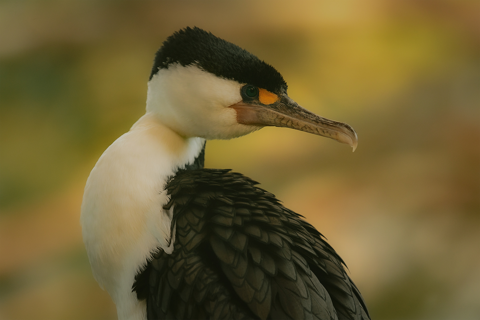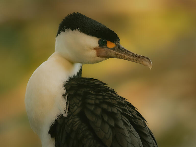 Resting Shag. This is a beautiful study of this shag. Which is, of course, a pied shag. And I love the way that you've come in close here. You've got everything nice and crisp and sharp. Colour wise, I think you have a colour balance problem here. It's very yellow. And that's somewhat problematic. I think that if you pulled the colour temperature back towards the blue introduced some blacks and, and a bit more vibrancy. You'll start to see the aqua in the eye. You don't have to get rid of all the yellow, but just enough yellow so that the whites start to look white and the, the colour of the bird looks more natural. So those are my thoughts on this and you have the essence of a very nice image here if you get the colour balance sorted. So well done on capturing something really nice.