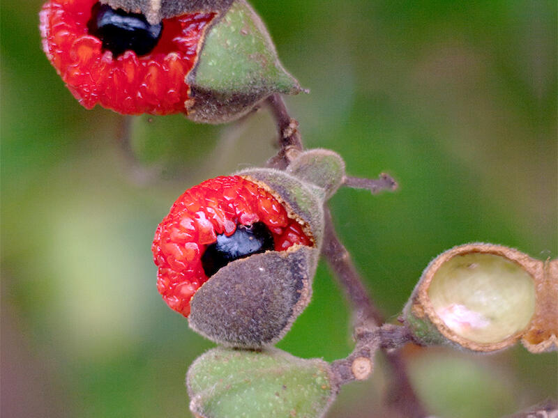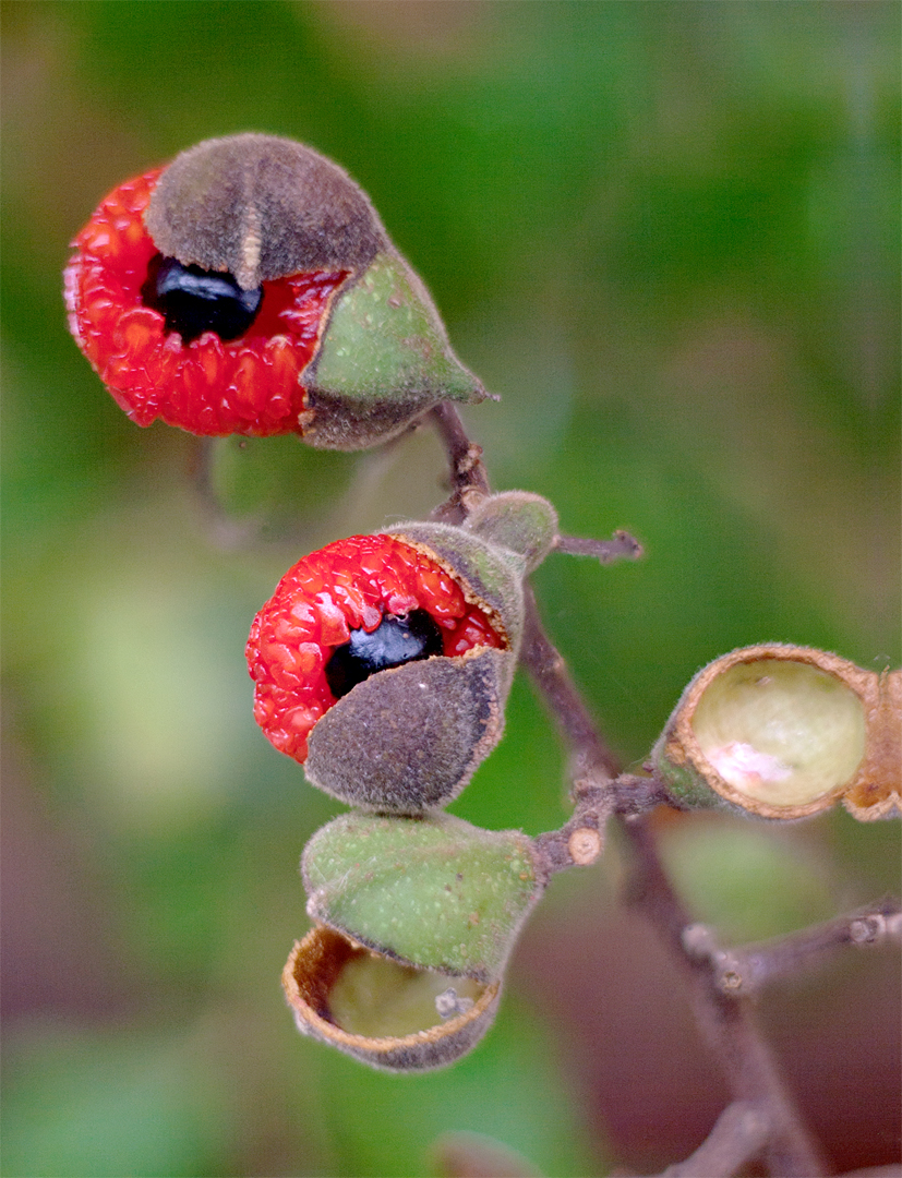Alectryon excelsus. I recognize the Titoki, which I have in my backyard. Mine hasn't yet come to flowering and fruiting like this yet. And I've had it in for ten years or so, I suppose. It's getting bigger, though. Maybe it won't be far away from producing these fruits. I always think they look delicious and wonder what they must taste like, but I've never actually tried one. But the birds sure go for them, so I would imagine, given that a lot of what the birds eat is actually quite tasty that they might actually have a good flavour. One of these days I'll give it a go. And this is showing the seed capsules with the fruit popping out very nicely. The Background is nicely diffuse, so well done there. The brightest part of the image is the back of the open capsule on the right at the bottom. Where we've got some burnout just starting to appear. So my suggestion with this one would be to, um, pull back a little on your exposure and, and highlights. And just try to get rid of that bright area if you can. You may have that in the raw image that you you're able to do that with. If it's clipped then you won't be able to save it I guess, but that's my suggestion for improvement on this one. I like the diagonal composition that you've given us here though.