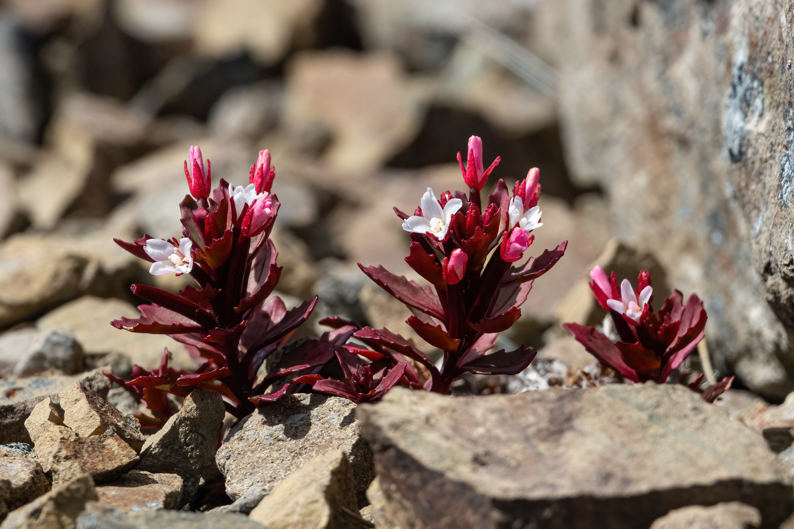 Willow herb, Epilobium. I think this is nicely seen and captured. Very colourful plant in amongst the rock screes. I think that we're just a little bit on the over contrasty side here. The whites are starting to burn out a bit, and the blacks are just a little bit on the deep side. I think that with a little bit of adjustment to the exposure and the contrast open the shadows just a little bit and pull back the highlights. You'll start to get an image that is not quite so hard on the eyes where we see the details in the dark areas and it still has good contrast. And those, that would be my suggestion this one. You could try also cropping the left plant out and, and concentrating on the two plants on the right. It would give us a bit of a triangular shape in the frame and you might Decide you like that crop but I'd like it also as you've shown it. So just a suggestion for you there.