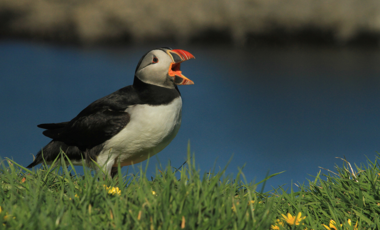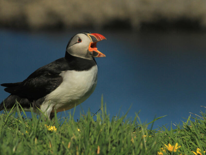 Fratercula arctica - Puffin. This is an interesting species. I always love puffin images. They're such colourful and unusual birds. This particular image is not quite sharp on the bird itself unfortunately. It may be that it was as sharp as you could get it but it's a close crop out of a whole frame. And we're just, you know, we've got as, as sharp as you were able to get it with the lens and the sensor that you had given the distance away that you were but it's not really what I would call a critically sharp image. It's, it's a nice image of the bird itself though, and we certainly get an idea from this of, of what they look like. And the depth of field has been well handled here with a nice diffuse background and within the limits of the technology you were using, probably as sharp as you were able to get it