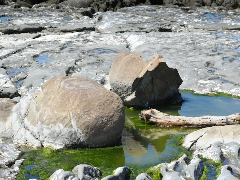 So Ward Beach Rocks is the next image. And these are interesting rocks. But, and they are part of nature. So you've told us where they are. What I really would've liked is if you had tried to do something about telling us what they are. They look like they might be some sort of, the one on the left in particular looks like it might be a, a concretion like the Meraki Boulders, but I've no idea whether that's the case or not. So a little bit of research on these would've would have helped telling us where they are. At least gets us there to have a look at them for ourselves if we're interested, but from a natural history point of view, it would be nice if you had tried to identify what sort of rock formation we are seeing here. Compositionally. It's not a really strong image. We've got lots of bright white at the top above the rocks, whereas the rocks are really the prime point of interest you're telling us about here. And at the bottom we've got the green water, but it's chopped. off in part at the bottom left and I wonder whether you'd have been better to show a little bit more of the foreground and a little less of the top at the back and try to make a bit stronger a composition of it. Apart from that though, the exposure is good, and I think that you should maybe have another go next time you're out there and see if you can make a better composition of it.
