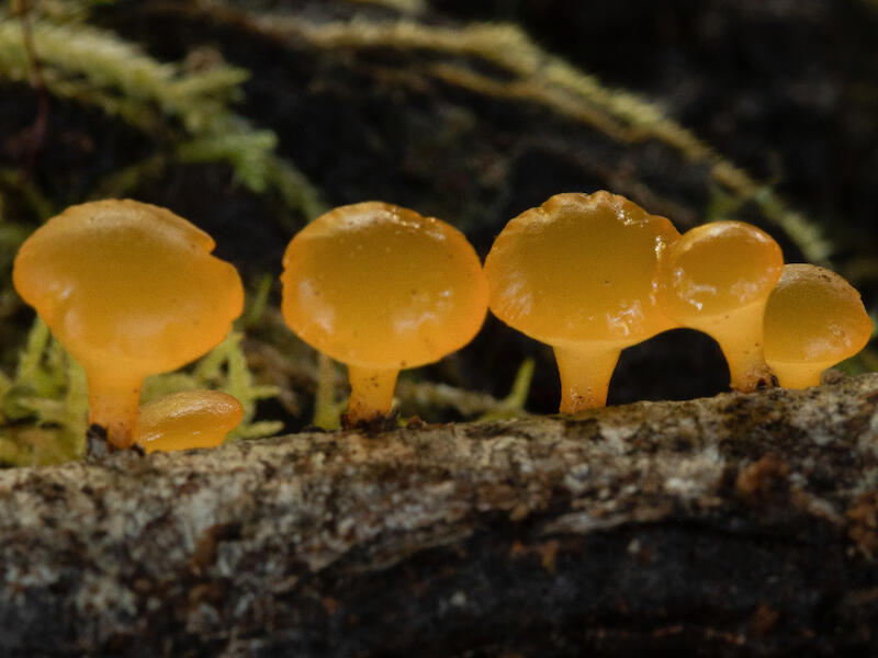 Yellow jelly fungus. And this is a nice cluster that you've captured here. It's unfortunate that you really haven't managed to get your depth of field right here. In fact, hardly anything is sharp at all in this image. Just the leading edge of the third from the right cap is just, oh sorry, well the furthest away edge of that cap is actually what's sharp and that suggests that you've you've got your depth of field wrong here. So this really, you really need to try again on this and you won't find that cluster, I guess, but just be much more aware of your depth of field make sure that in trying to get the light, you don't close the shutter down, sorry, the you don't open the shutter up so far that you end up with too shallow a depth of field. Use your ISO to help you here. Much better to have an image that's sharp than an image that doesn't cut the mustard when it comes to capturing what you saw the way that you wanted to. The exposure on this is, is fine though and, , that's my comments on this one.