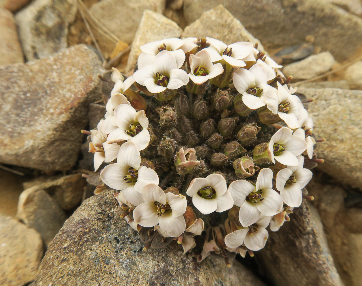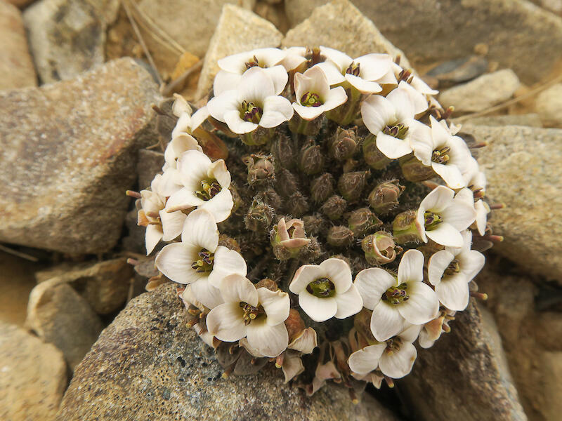 Notothlaspi austral. I'm sure, is a mountain species on the rock scree slopes, and I think this has been nicely captured. It's nice and sharp throughout and we are seeing its environment so it's successful in this respect. I like that we've got flowers open and we can see buds as well. Where I think this could be improved is by pulling the colour temperature away from yellow back towards blue a tiny bit. Um, And toning down the highlights and opening the shadows and adding back a little bit of vibrance, I think those, those sorts of things would just get us away from the yellows and it would help us to see the details as well in the petals, a little bit more clearly. At the moment there's just a slight washout of detail, especially near the back and those petals, and I think that detail is there. So that's my thoughts on this one.