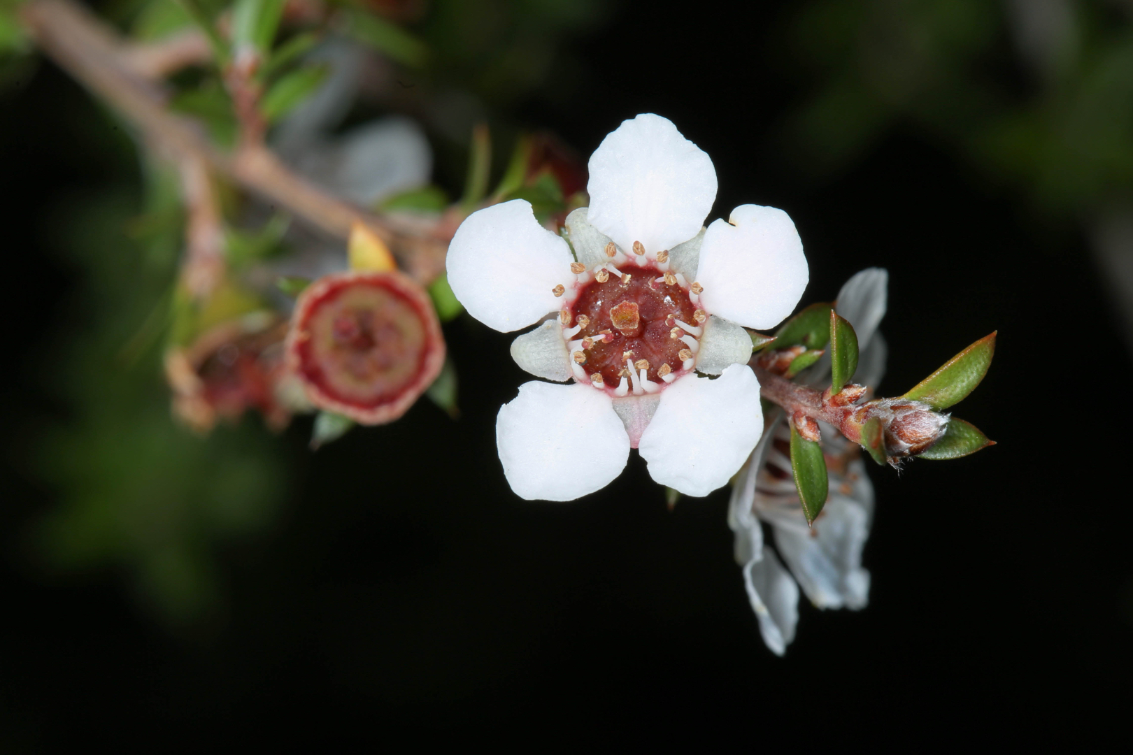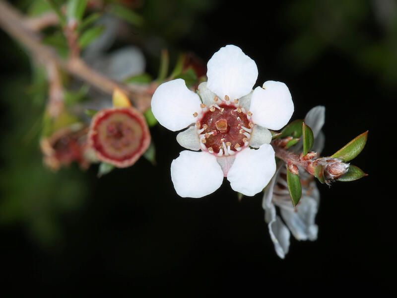 Manuka flower. This is a lovely study of a manuka flower with very nice sharp detail. The, the biggest issue for me is that the white of the pedals is just a little bit too white. We're overexposing on the whites and losing the pedal detail, which is there if you pull the exposure back a little. And pull back the highlights a little and substitute in a bit of white too. Pump things up again. I think that you have the makings of a very nice image here. It's all there, just as you've presented it. The pedals themselves are just a little bit overblown. So nice job.