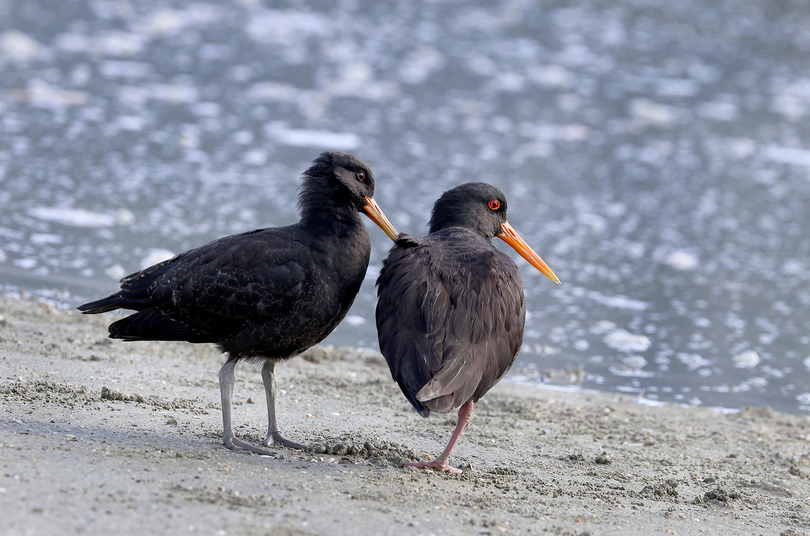 I am hoping that the adult was just resting its other leg, because one good push from the youngster and I can see it going down. Lovely detail in both birds. I like that the background is blurred enough so it doesn't overtake the subjects. I would have liked to see the birds facing the camera however I am well aware of how difficult that can be at times. A touching moment between the two birds.
