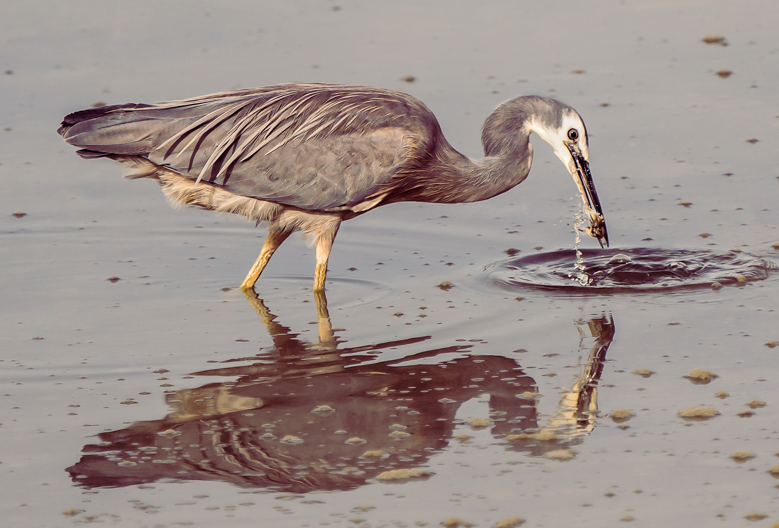 A well caught image. The heron is nice and sharp. We can see where it lives and what it eats. Very good feather definition. Being picky it could do with a tad more room on the right so that the splash circle is not cut off.