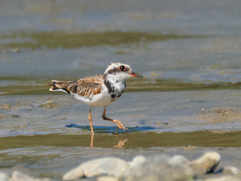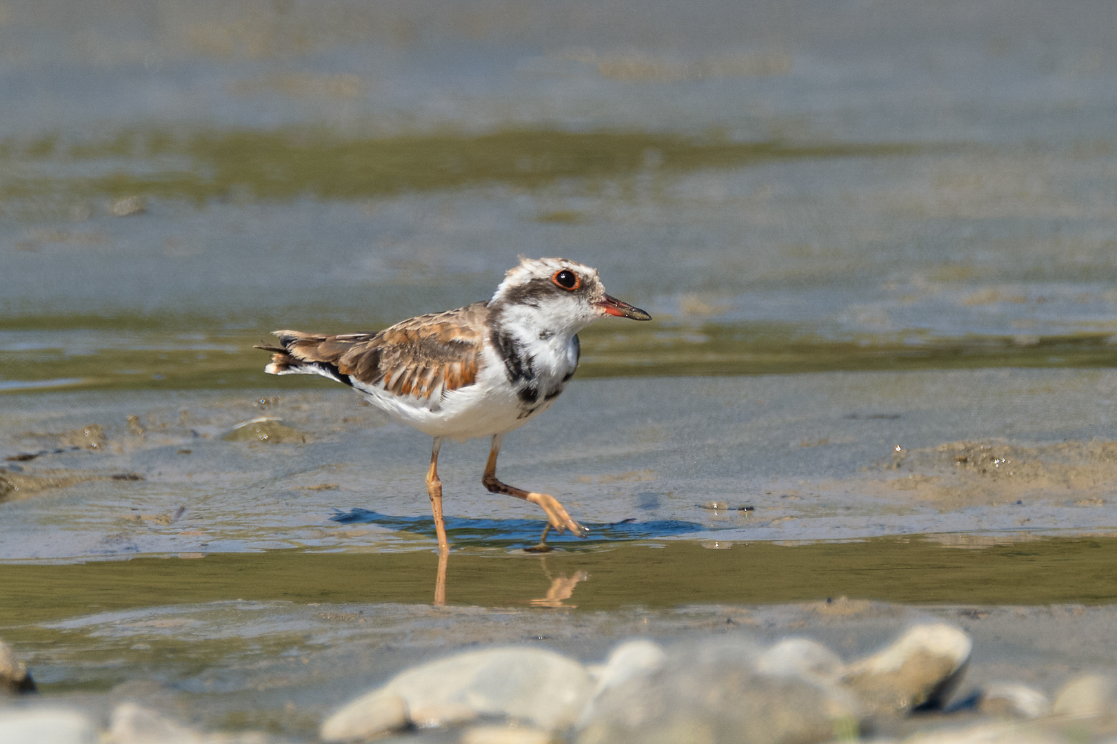 A good capture of a bird I have never seen before. I like the bright contrasting colours in the beak and eye of this little dotterel. Nice depth of field showing the bird's environment but blurring it before it becomes a distraction. Well presented.