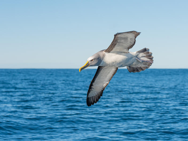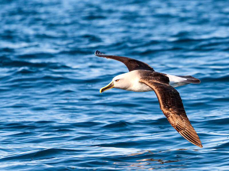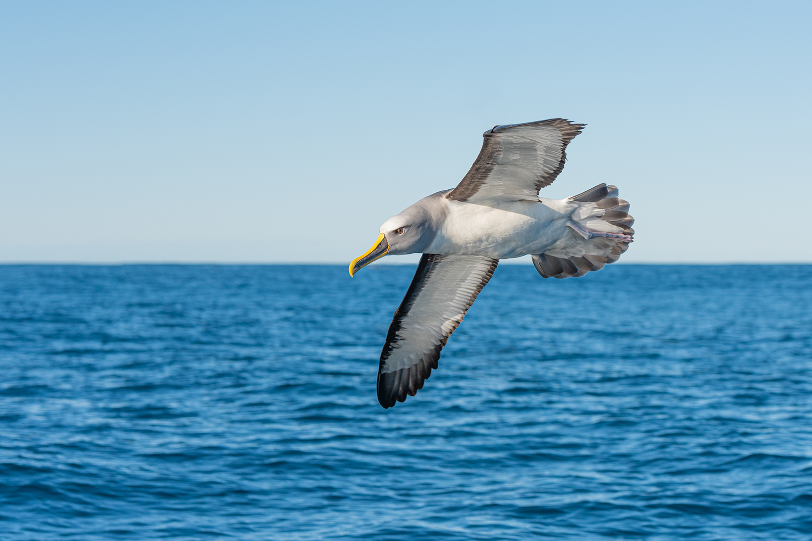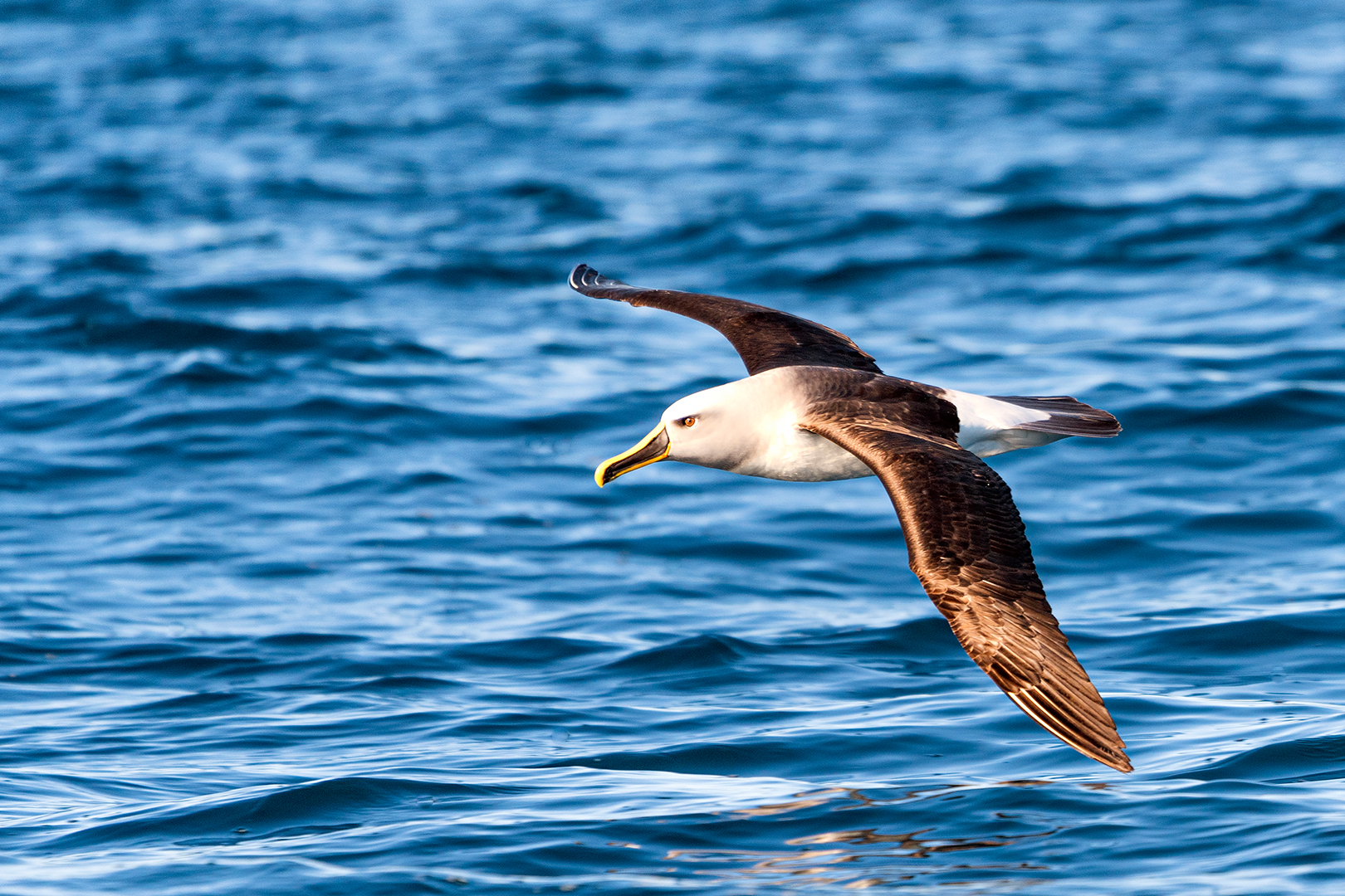 Another lovely image of the mollymawk. The depth of field is good as is the sharpness. There is room for the bird to fly into. There is a slight loss of detail in the whites.