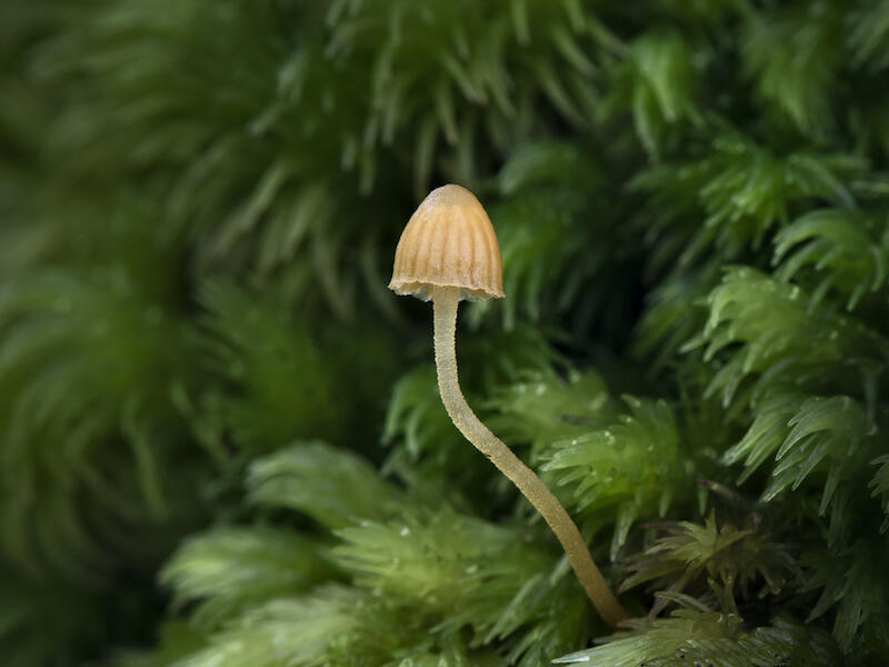 Orange Mosscap Fungi (Rickenella fibula) Mert