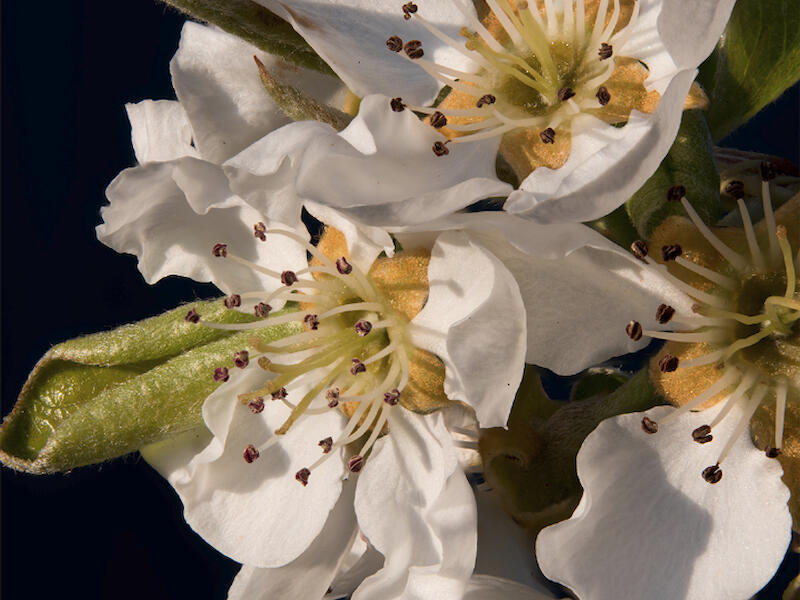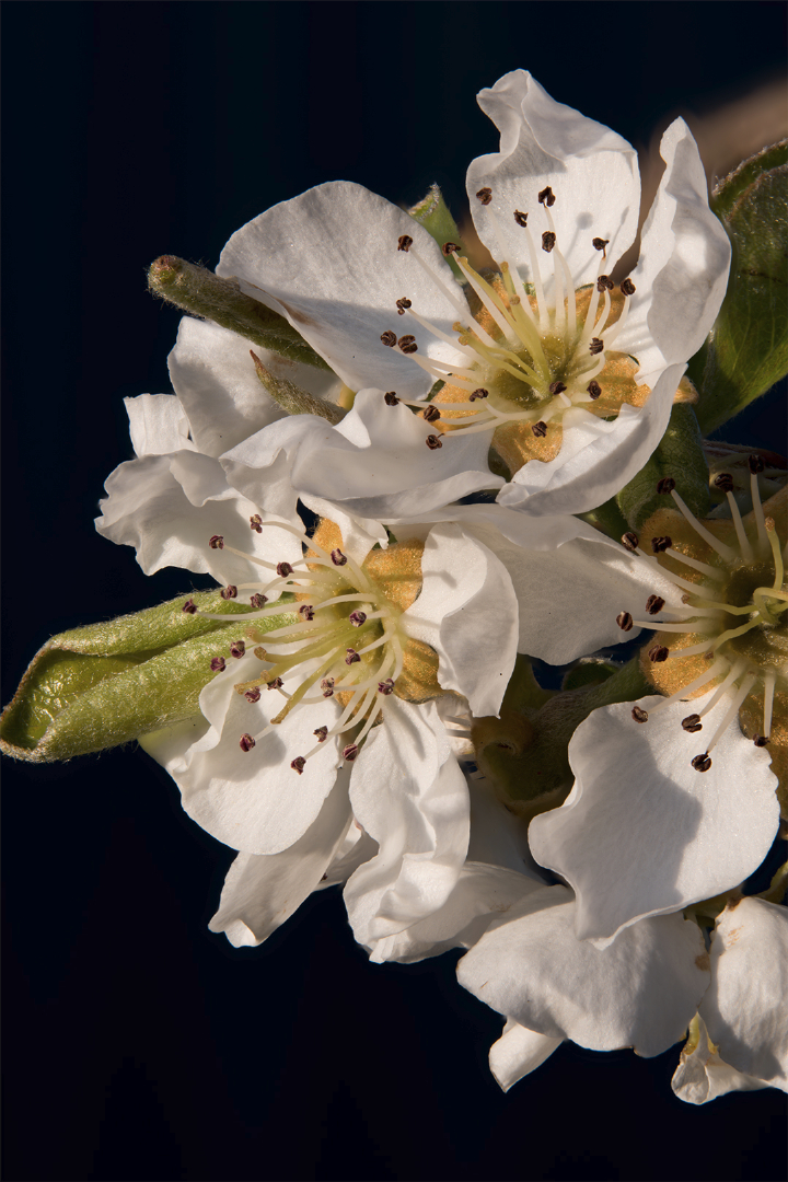 The blossoms and stamens are nice and sharp. The whites have been handled nicely. The leaf going out of the frame on the left should be all in the frame.