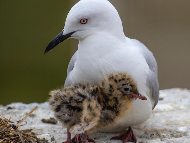 The image has been exposed well so that we can see the feathers in the white areas. There is a nice story being told in the image. We can see what the chick and adult look like, where they live and how they live.