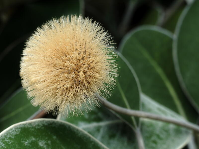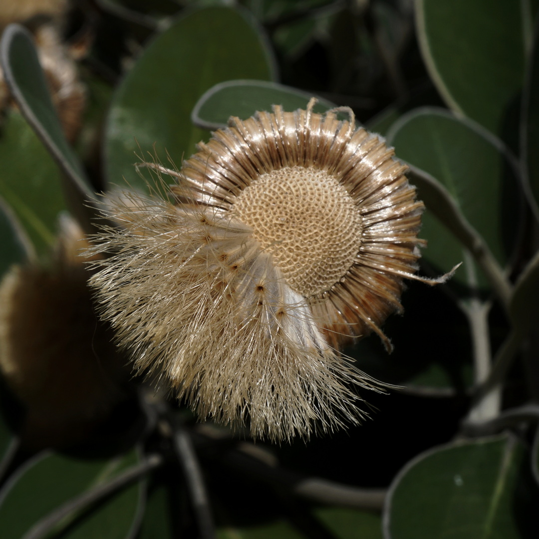 We can see the spiky nature of the seed pod and also the feathery seeds and how they are dispersed. Unfortunately the sunny day has bought up a lot of highlights in the leaves and the intense blue of the sky pulls my eye away from the seed pod.