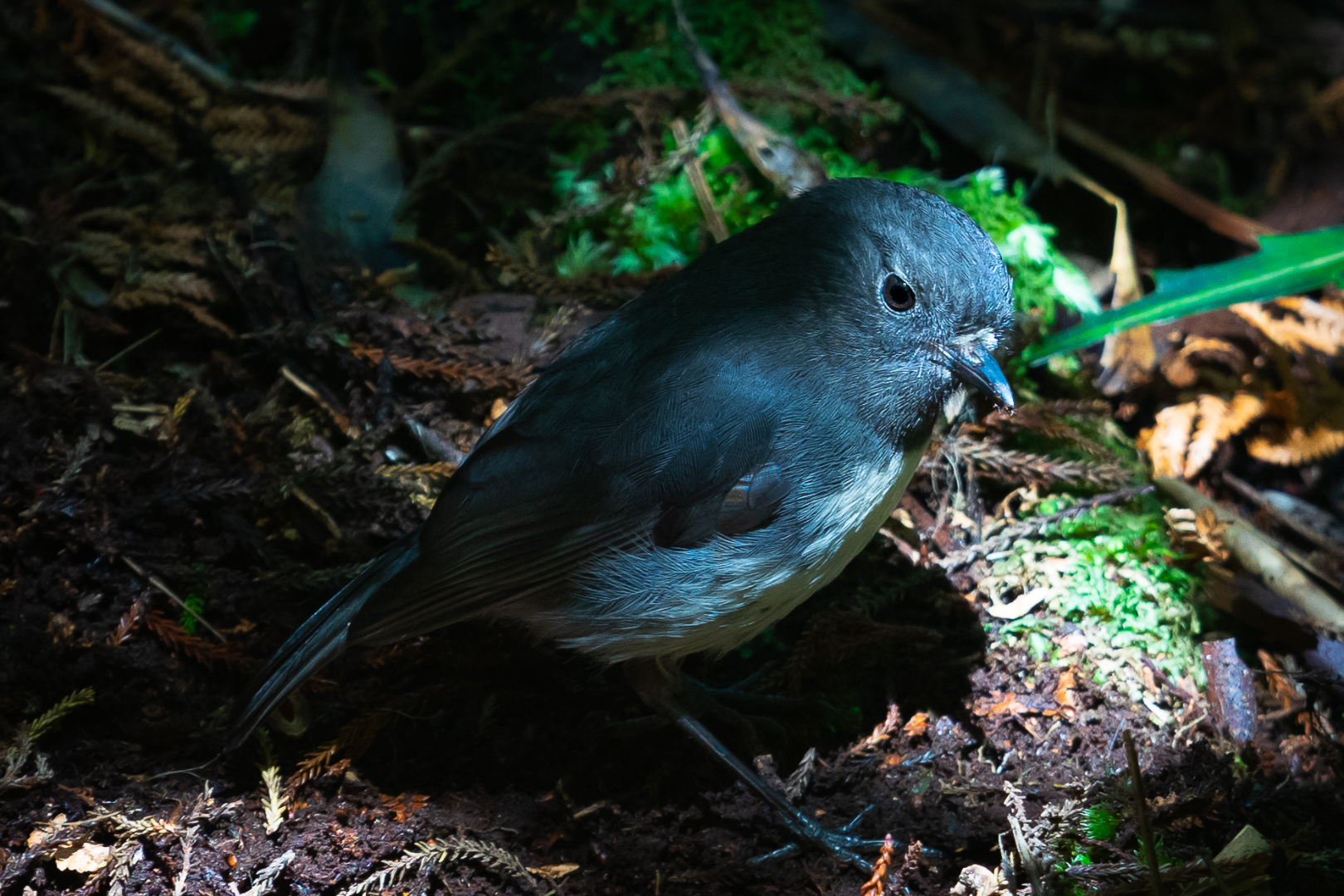 The bird itself it lovely and sharp. It looks like you had a sunny day as the highlights on the forest floor are very bright and the back of the bird has lost all detail. There is also a blue tone to the image which could have been corrected with the right white balance.
