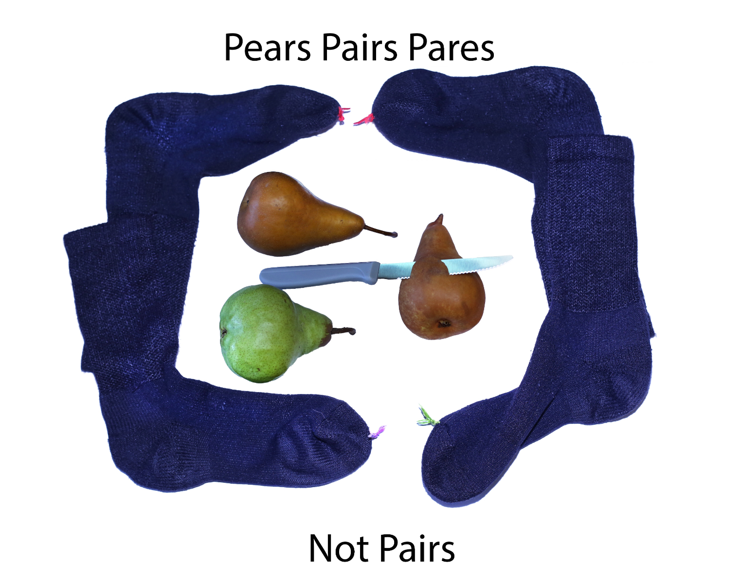 | Pairs Pears Pares | M | Ha, gave me a good laugh. Thinking outside the box, a good amount of effort involved Merit. |