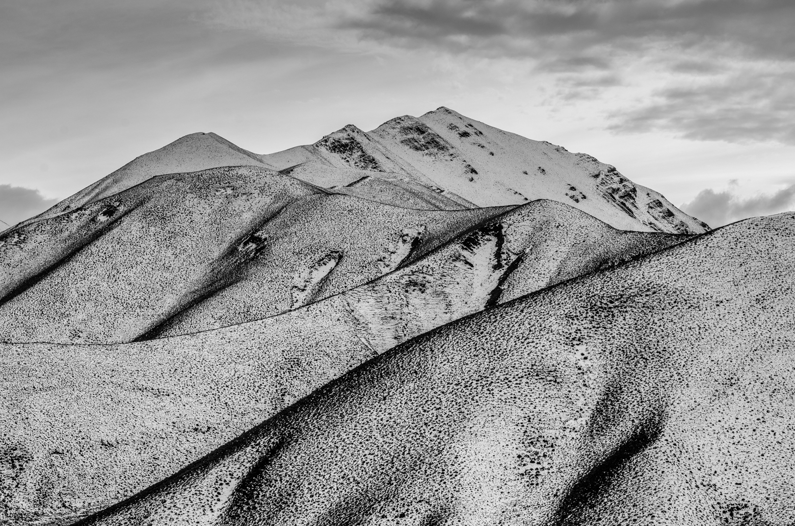 Lindis Pass - I like your tonal handling, and the connecting lines making up the composition – all leading out to the right. I would like more sky detail to be burned in to be 'picky'.. - Merit