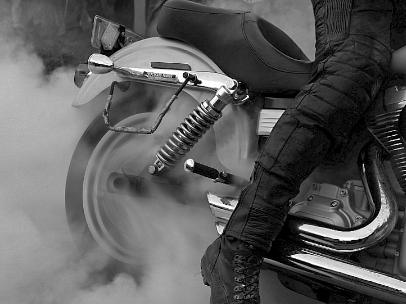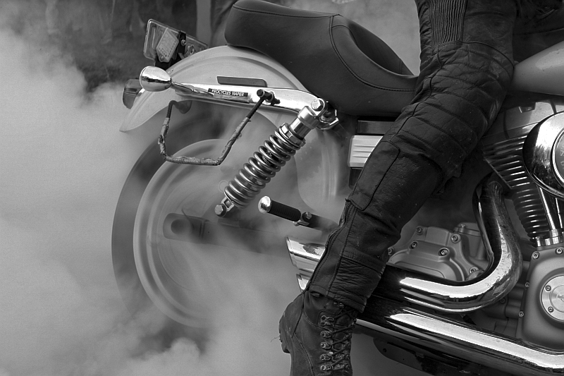 Burnout - Good tonal range and evidence of movement. More impressive to me if rider was seated and boot on footrest. - Merit
