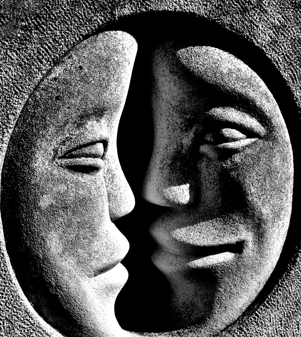 Te Sun and the Moon - Great 3rd shape created between the 2 contrasting faces. Lighting and texture great. If space is available do it again