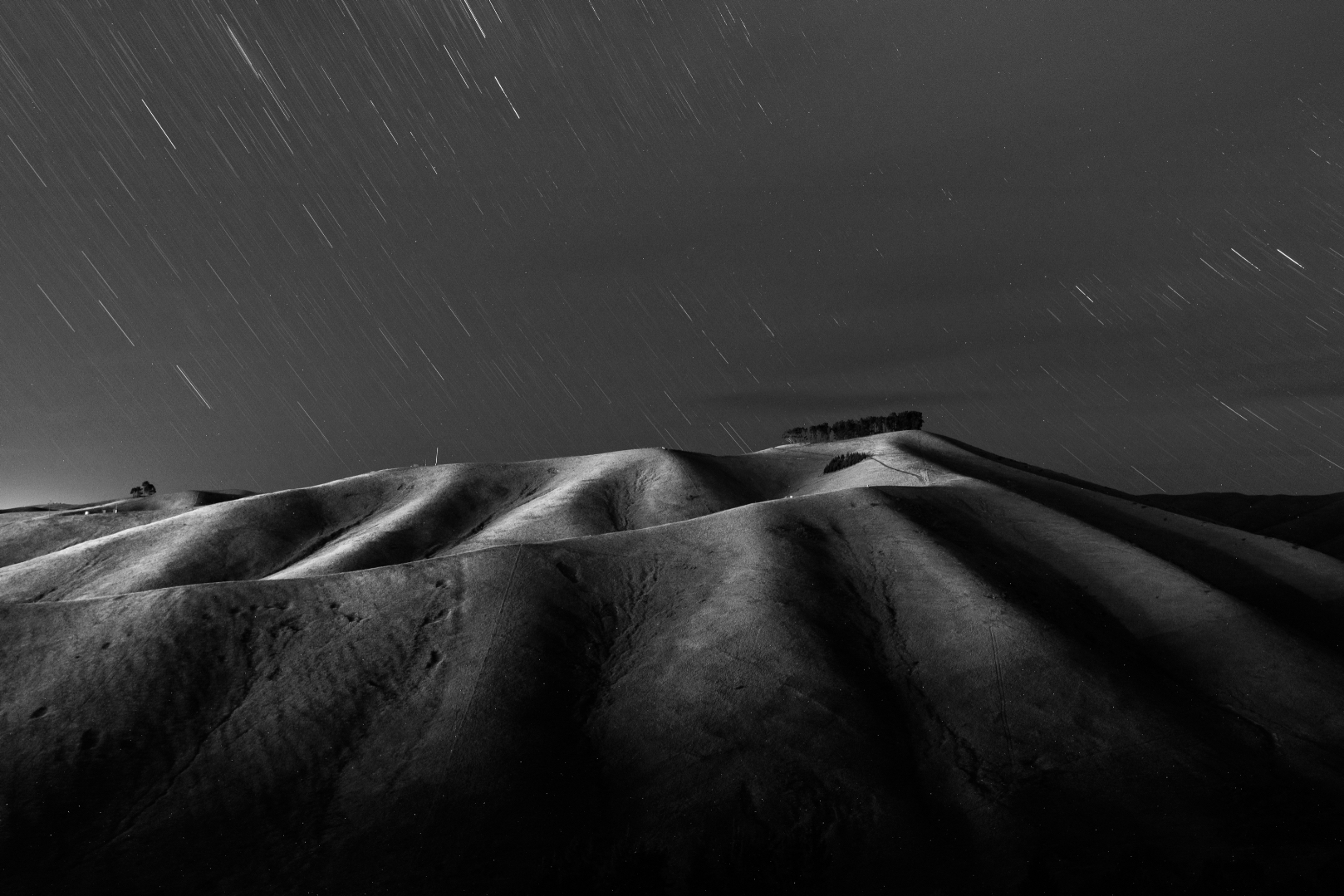 Good monochrome treatment and tonal variation.I suggest moving slightly left so stump arms are backlit by the moonlight. I think this could make a stronger image. – Accepted