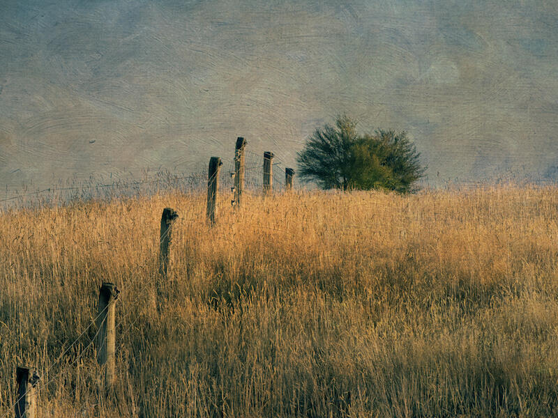 Summer Pasture is a well put together textured image which creates some interest in the sky with that painterly touch. The texture imposed over the whole thing, does give it a soft colour palette that works with the whole thing really well. In this case, I wonder if you cropped in from the right hand side to closer to the edge of that tree, whether you put that tree on a more powerful point on a thirdish sort of point, whether that might pull my eye to that more strongly. When you use these techniques you're creating an abstract sort of non realistic representation of things. And when you do that, you need to use all of the visual techniques to draw my eye to where you want me to look.
