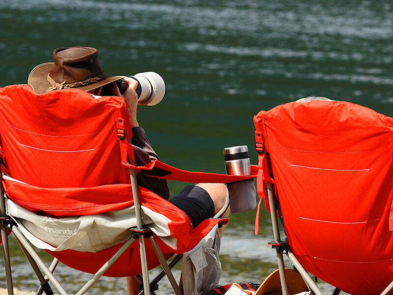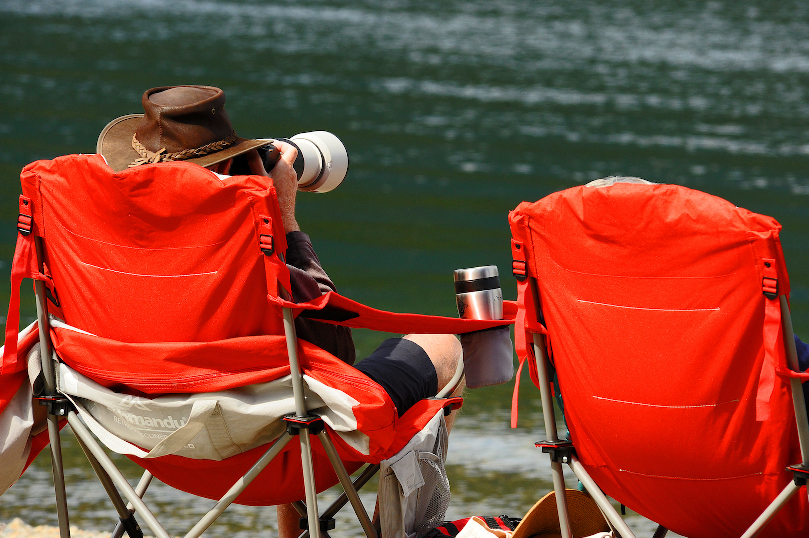 Spectators. I'm not sure what they're spectating for. So I get a bit of … I'm getting a really half, not even half story, a little moment of story. There's a couple of people sitting in red Katmandu chairs looking at something in the water. But exactly what that is, I have no idea why they're looking at it. And there's more no ideas than there is. There is story here for me. I would love to get a sense, you could still emphasize the bloke with the camera if we could see what it was he was photographing. The story would make vastly more sense to me.