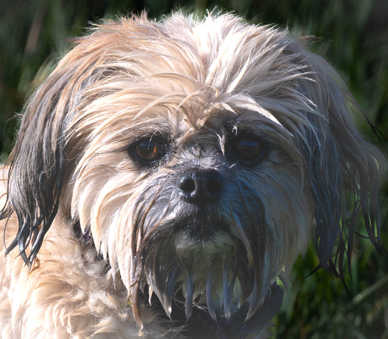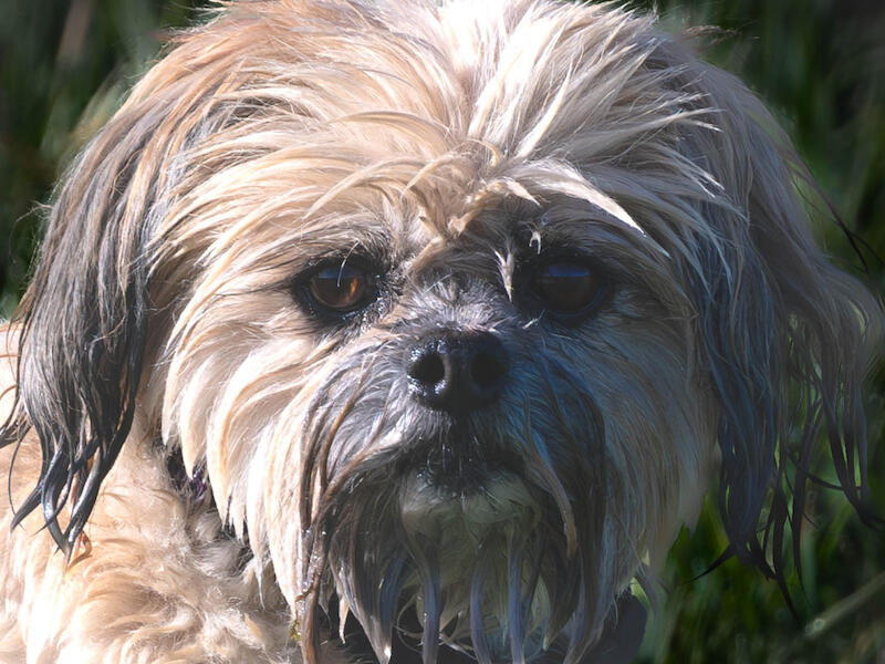 Lucy Rocking The Wet Look is a cool little picture of this little dog who's might clearly rock in the wet lip whether she's been drinking or diving around in the wet grass or in the river. I'm not sure what it is. And I do wonder perhaps if the story might grow a little bit if you, if you just explained visually what has actually caused this wet look. As much as anything else and maybe you could then explain whether this look on her face is a bit forlorn or is a bit, you know, let me go back to whatever it was. Good picture of her face, a little lacking in context.