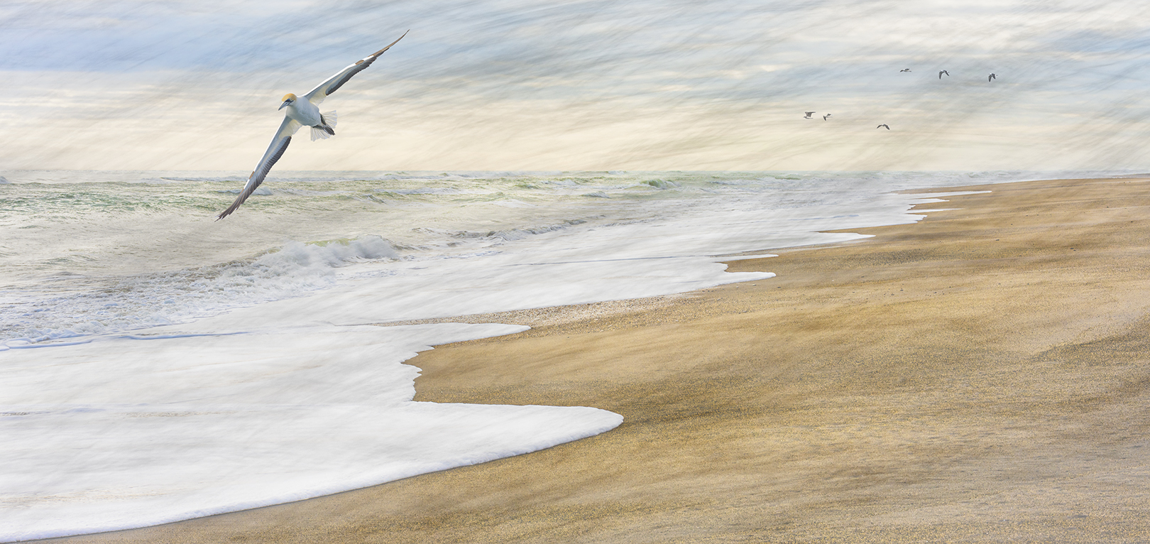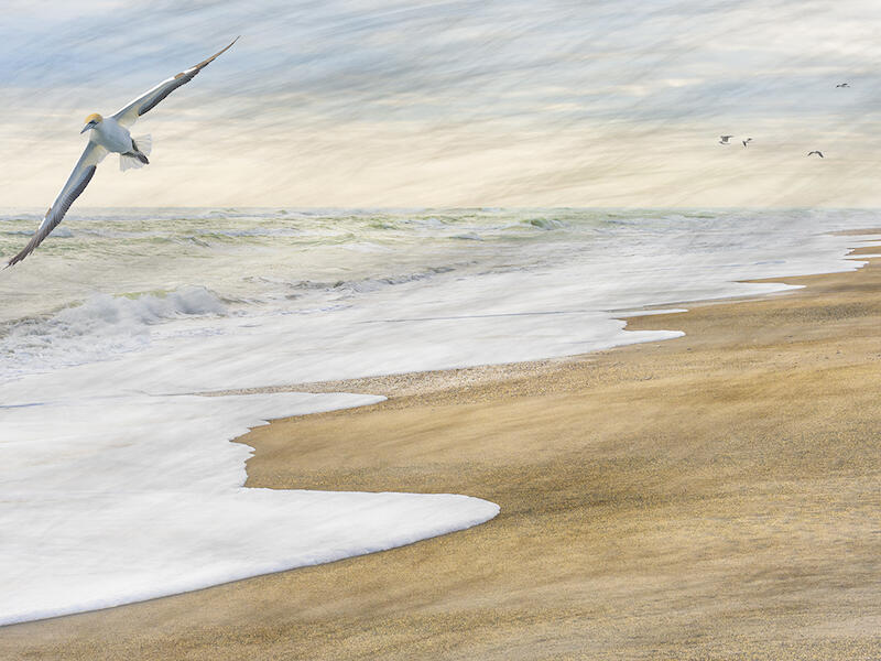 Riding The Visible Breeze. I really enjoyed the creativity that went into this picture. Some ICM effect in the background with an overlay of some texture that gives us that sort of horizontal lines. And then you've superimposed over the top of that, the gannet in the foreground and the group of seagulls in the background. For me in this picture, the gannet pulls me visually a bit much. I like all the other work that's gone into the background with the slow shutter speed and the lines and the textures and the colours and then the seagulls superimposed, sort of fall into the background by the really strong component of the gannet. I just think, the balance is a little bit out for what you're trying to achieve.