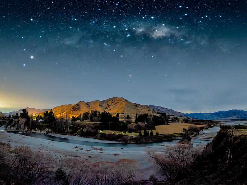 A River Runs Through. This is really an interesting effect and because it's clearly been made at night time with the stars shining there and the stars are all a little bit soft so there's some movement in there so it's probably a quite a long exposure which has created the cool colours in the background. Probably I think from the lights of the cars going past perhaps or maybe there's a township over there I'm, not sure what it is, but it's added a warmth into the hills which looks really appealing and is a little unusual and then the emphasis of the river running through and forming the whole thing is, is what ties the whole thing together. So that works really well. The thing's just a little bit soft to carry this effect off as well as you could potentially do it. I don't know whether there's been a little bit of movement in the shutter with that long exposure or what, what it is, but the images could be more crisp and would be more effective.