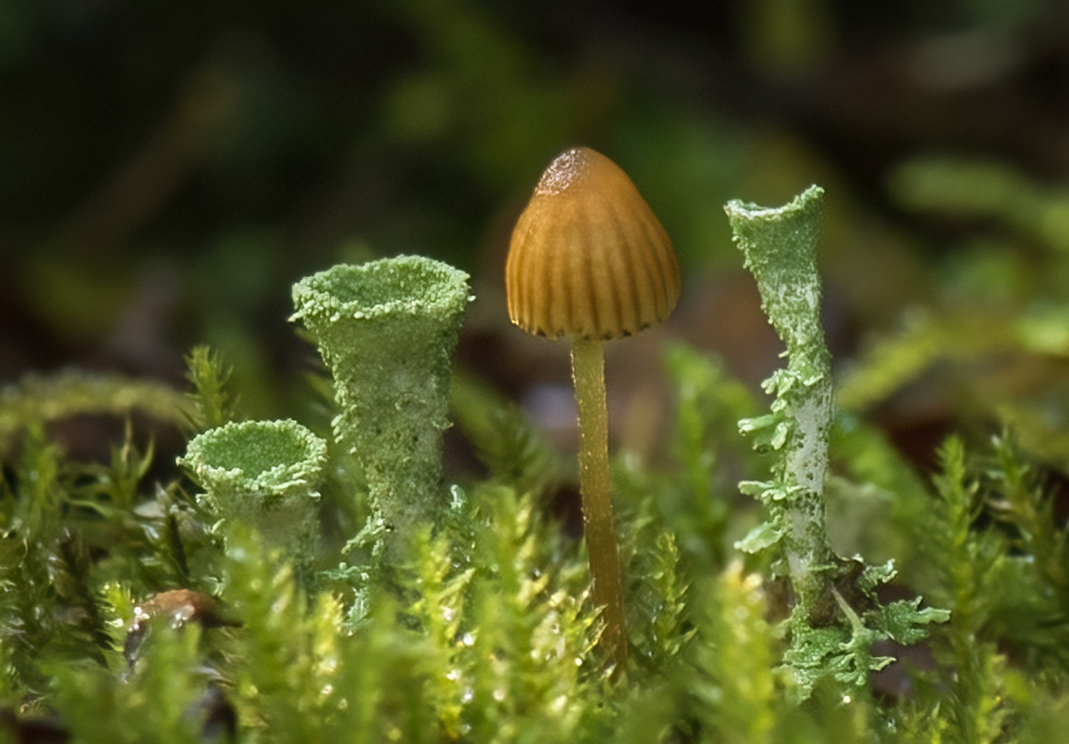 | A | Fungi & Lichen | honours | The fungal fruiting body makes for a strong image along with the fascinating form of the lichen. The light on the subject is excellent and the two-tone colour palette adds another strong compositional element. A bit more critical sharpness on the fungi istelf would have been even better. | |