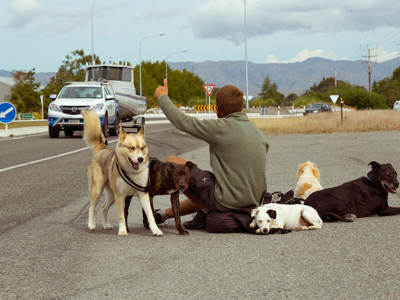 | A | Hitching A Ride | honours | There is so much story in this image. We can’t see the main character’s face but know exactly what is going on. And it’s easy to empathise with someone needing a ride with five dogs in tow. The shapes and placements of the main elements makes this a strong composition. I would suggest perhaps a monochrome treatment may have strengthened that aspect. The cherry on top for me, is the tyre marks leading from the roundabout to the character, almost willing someone to stop. | |