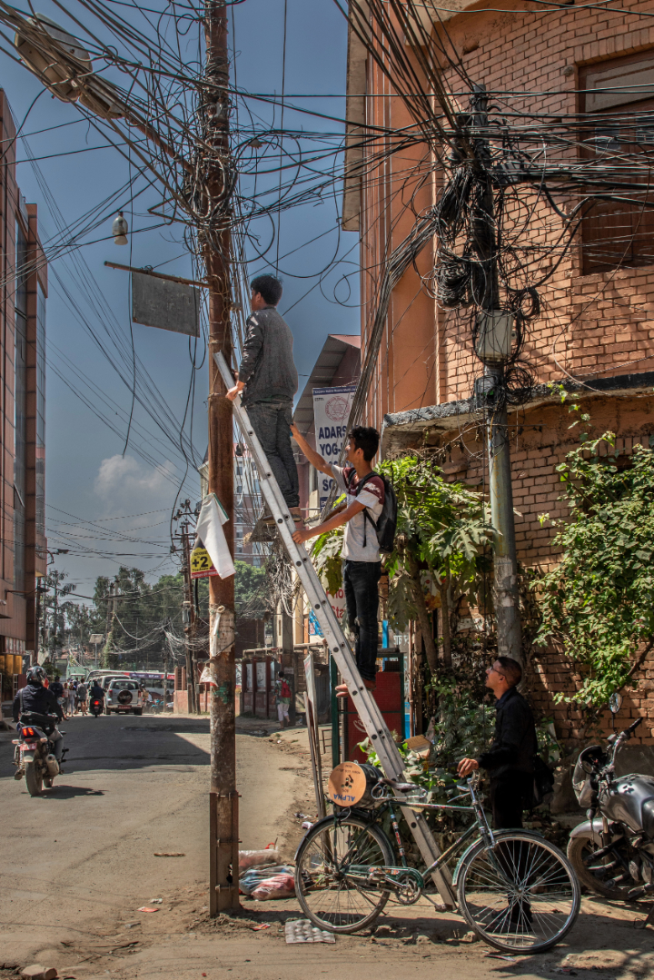 | A | Please Hold the Line | merit | Good thing the top character has his safety backup! This image is so close to being a favourite for me. There are a number of elements that really add to the story, the bottom character looking up, the ladder creating a leading line, the confusion of wires holding the viewers eye in the frame, even the motor cyclist seemingly oblivious, suggests this is a normal scene for this place. The tonal correction: lightening the figures and darkening the sky can be seen, sometimes less processing is more. | |