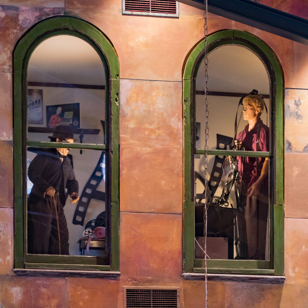 | C | Behind the windows | merit | The viewers imagination is invited in to the story. The composition creates a strong dynamic between the 2 characters . Had the character on the left not been partilly obscured across the face, this would have stronger. | |
