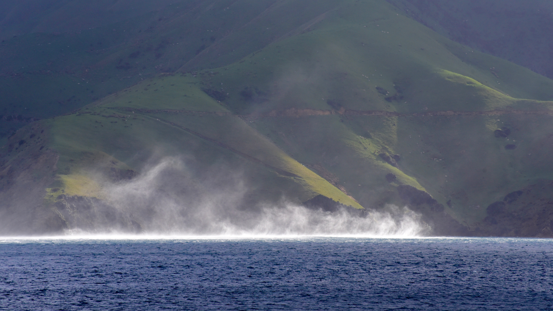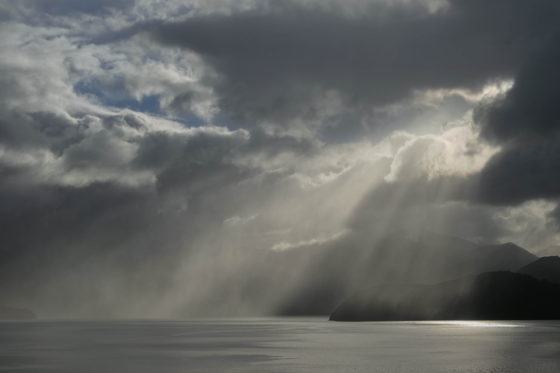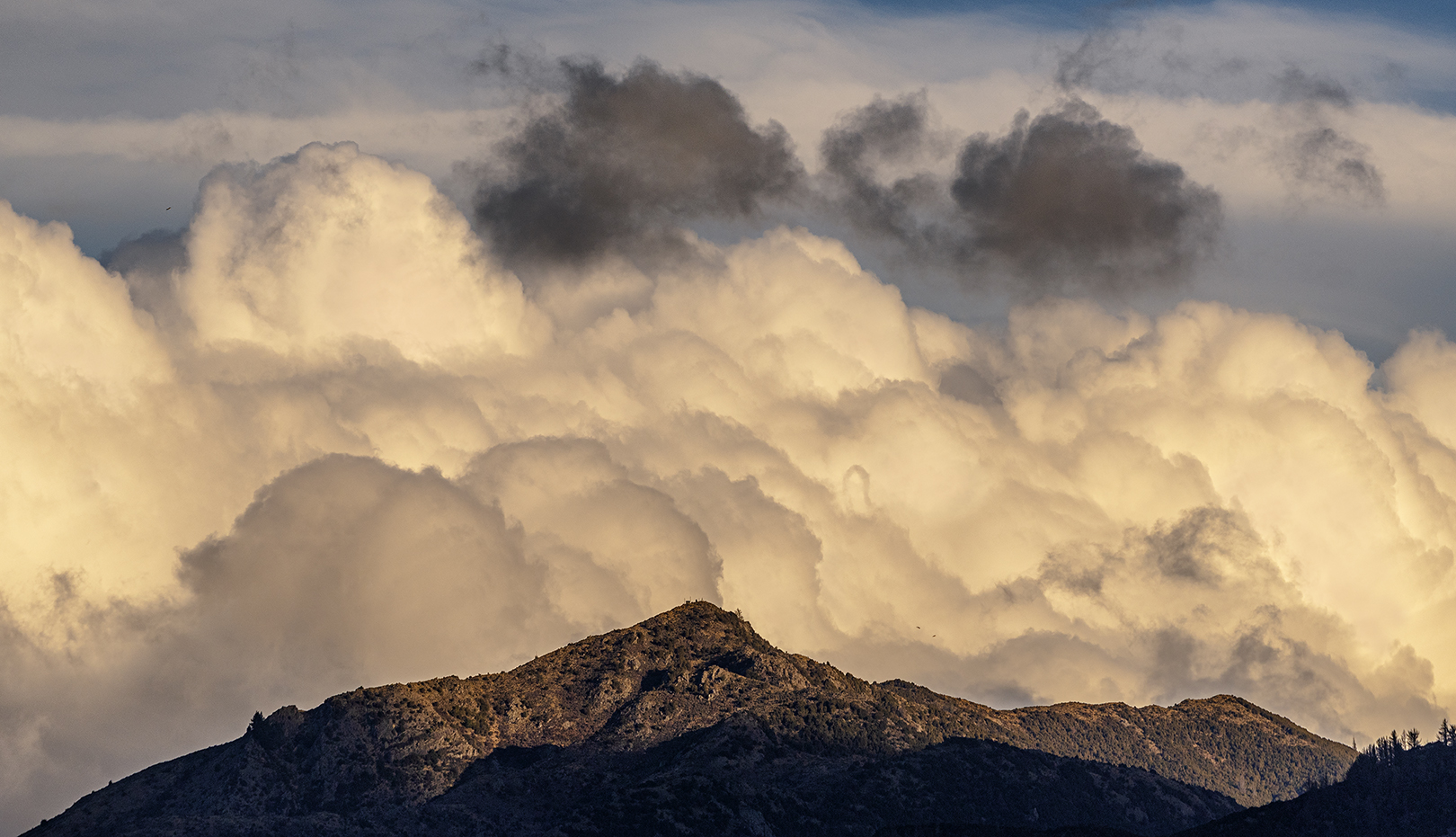 Very intriguing and very dramatic. Excellent story, extremely windy, I wouldn’t want to be in the middle of that squall. Those background hills are towering and look imposing, the sun touches the bottom of the clouds and on the hills adding to the scene.